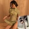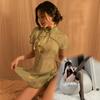 Sex Underwear Passion Perspective Temptation Classical Stand-up Collar Cheongsam Retro Embroidery Split Fork Sexy Hollow Pajamas