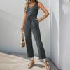 VEZFAA Women's Fashion Casual Summer Spring Solid Color Print Sleeveless V-Neck High Waist Trousers Jumpsuits & Rompers