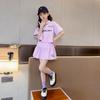 Summer Teenage Girl Clothes Set Children Letter Print Lapel Tshirt and Skirts Suit Kid Short Sleeve Polo 2-Piece Set