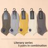 5 Pairs of Men's Spring and Summer New Solid Color Casual Breathable Low Top Boat Socks