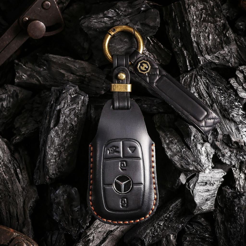 Retro Leather Key Bag for Mercedes-Benz - Premium Handmade Cowhide Cover