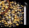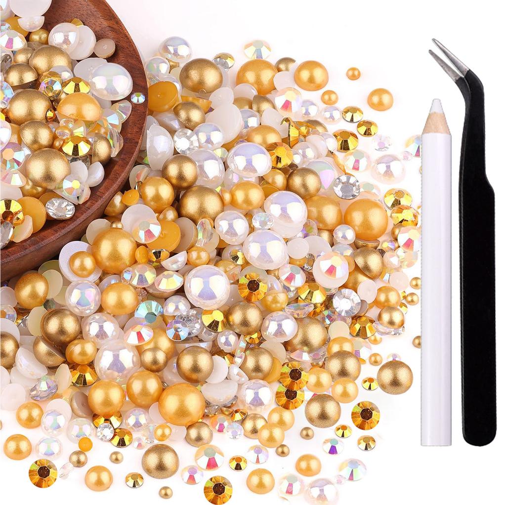 80G Flat Bottom Pearl Rhinestone Handmade Gold Black 3-10Mm Resin Rhinestone And Half Pearl Diy Clothing Accessories