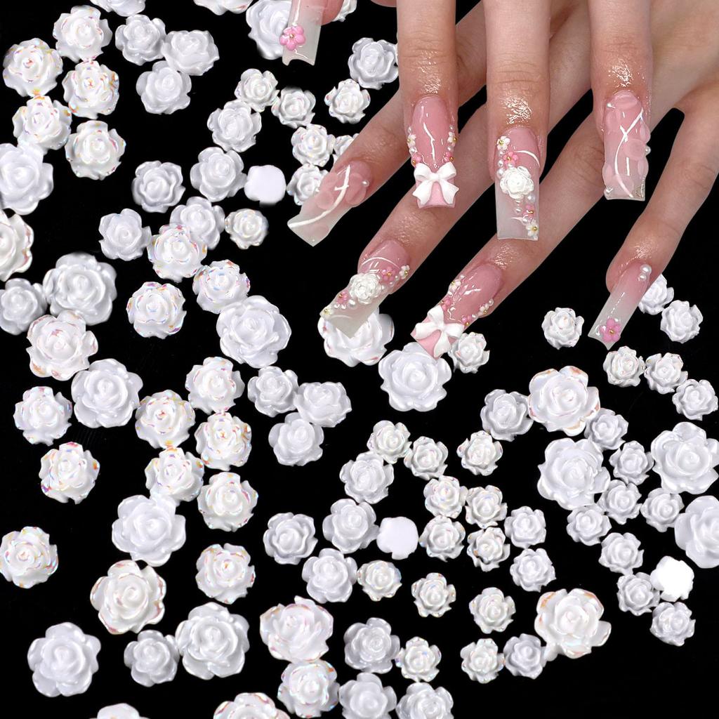 Nail Art Resin Camellia White Rose Ornament Nail Ice Transparent Three-Dimensional Light Changing Flower Accessories