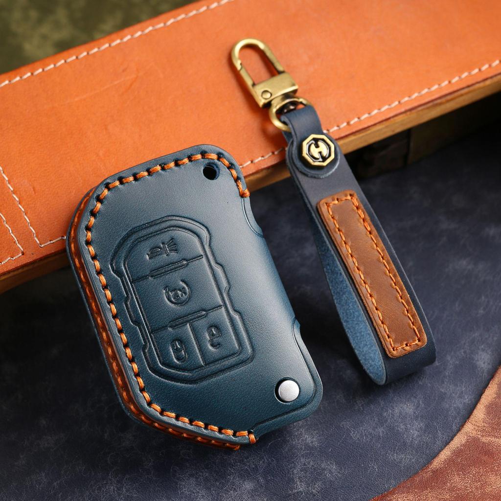 Leather Key Cover for Jeep Wrangler & Gladiator 24 Models - Men's Off-Road Accessory
