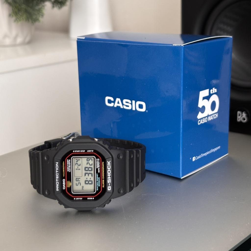 The Casio G-Shock Digital Bio-Based Resin Quartz DW-5600RL-1 combines rugged durability with eco-conscious design. Featuring a bio-based resin case and strap, this shock-resistant watch offers a black digital display, 1/100-second stopwatch, countdown timer, and multi-function alarm. It includes a full auto-calendar, 12/24-hour display, and month, day, and date display. With 200M water resistance, an LED backlight, and a sleek design, its built for tough conditions and active lifestyles. The watch also features a buckle clasp, screwed case back, and a case size of 48.9 42.8 13.4 mm.