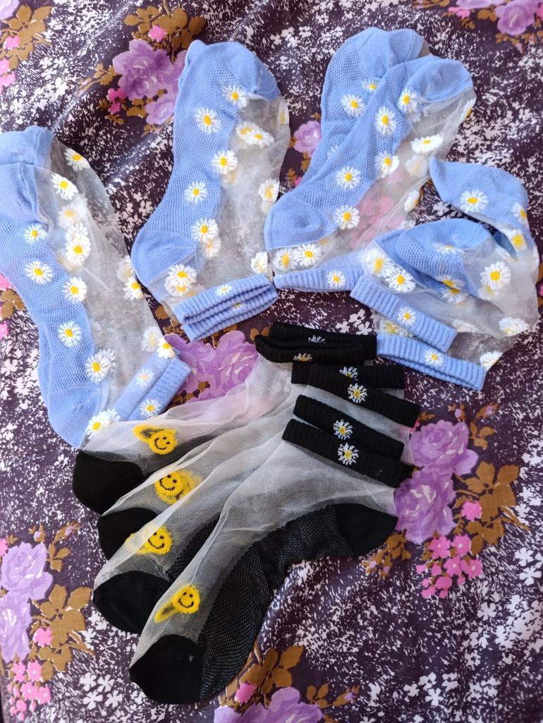 1 Pairs Daisy Pattern Socks, Soft & Lightweight Mesh Short Socks, Women's Stockings & Hosiery