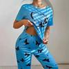 Women's Home Clothes Suit Heart Print Pajamas Set Soft Comfortable Crew Neck Tops & Pants Pyjama Femme Sleepwear for All Seasons