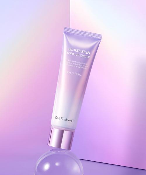 CELL FUSION C Glass Skin Tone-Up Cream 50ml is a tone-up cream that brightens the skin tone, featuring a 70% water base for a soft and moisturizing texture. As you apply this product, your skin glows like glass, providing a clean finish without stickiness. Suitable for all skin types, it absorbs naturally into the skin, delivering a seamless tone-up effect.