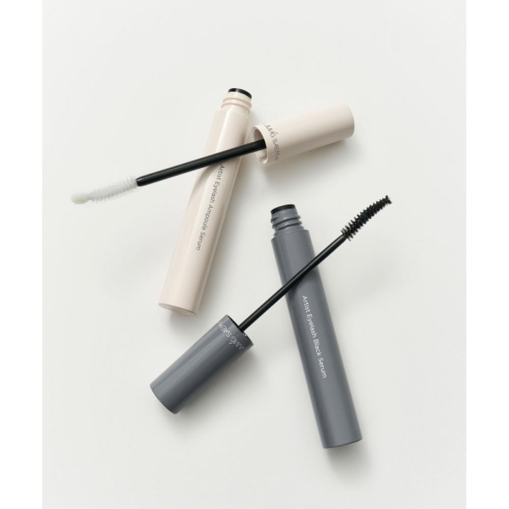 JUNGSAEMMOOL Artist Eyelash Serum Duo (Ampoule + Black) is a set of eyelash nutrients comprised of two products. The set includes an ampoule serum and a black serum, aiding in the health of eyelashes while providing a naturally crisp black color. The ampoule serum acts as a treatment that nourishes lashes without irritation, while the black serum has a tinting effect that makes it suitable for use as a mascara substitute.
