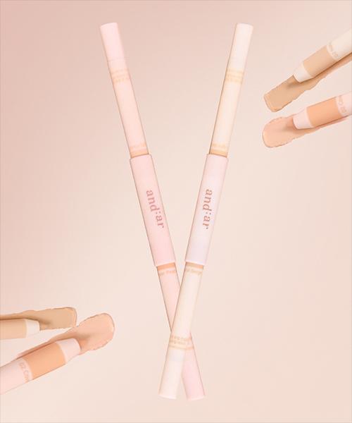 ANDEAR Soft Skin Fit Dual Concealer Pencil is a base makeup product in the form of a concealer pencil. It offers two color options: 'Dual Beige' and 'Dark Correcting' to cover various skin blemishes. This product effectively conceals dark circles, blemishes, and pigmentation, with a soft texture that adheres naturally to the skin for long-lasting wear.