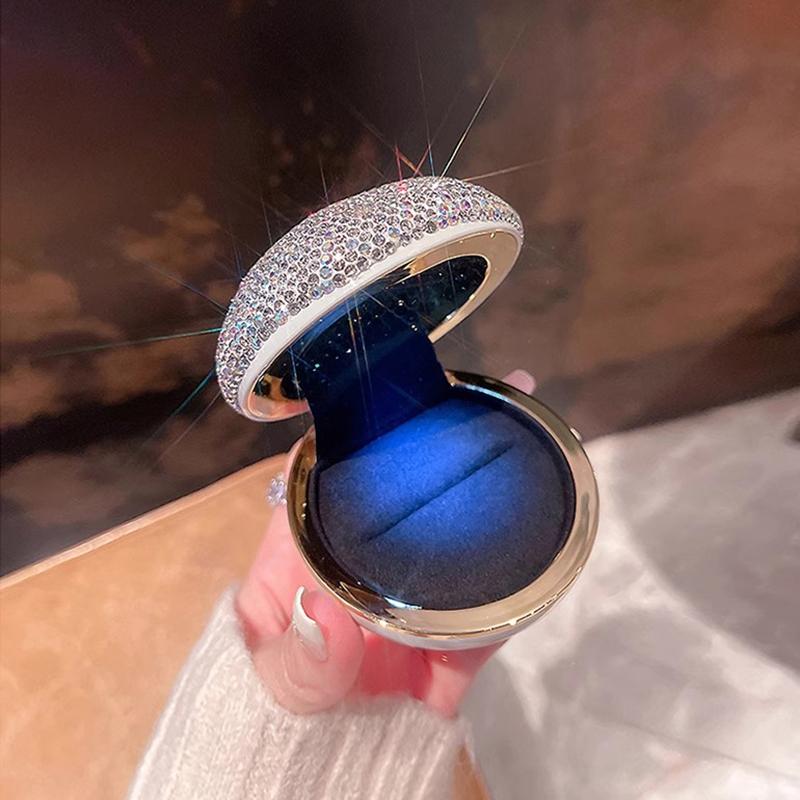 Luxury Proposal Ring Box Diamond Studded LED Ring Boxes Wedding Rings Packaging Box Women's Jewelry Storage Display Boxes