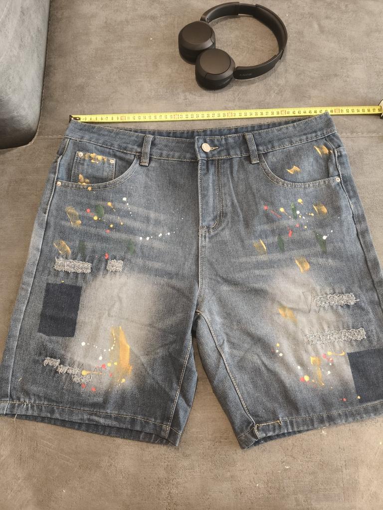 Men's Trendy American Style Graffiti Slim Fit Ripped Denim Shorts