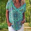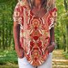 Fashion Women's T-shirt 3D Floral Print Tops Tees V Neck Short Sleeves Female Clothes Summer Large Size T Shirt Woman Clothing