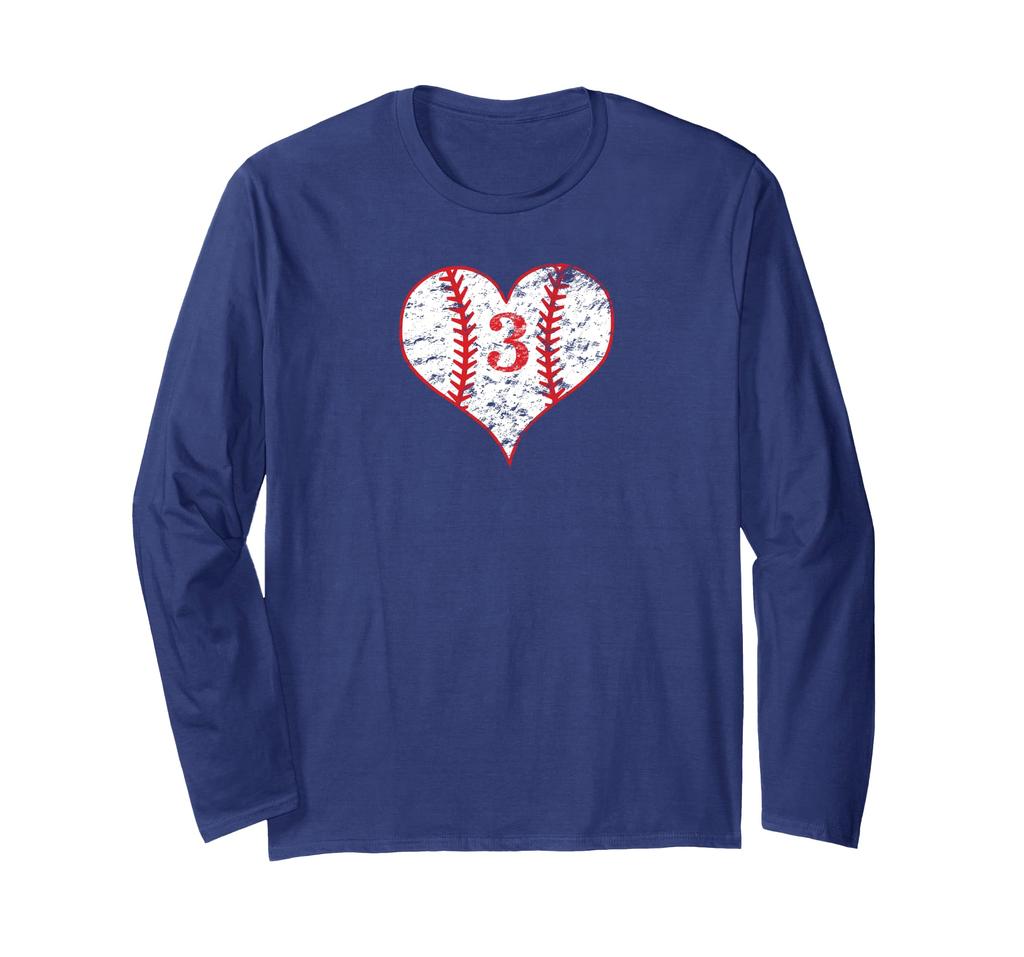 Vintage Love Baseball Mom #3 Baseball Heart Number 3 Fan Long Sleeve T-Shirt