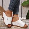 Large Size 43 with Sloping Heel and Thick Bottom Fish Mouth Sandals, Summer Beach Open Toed Shoes with Rocking Line