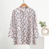 Cotton Silk Printed Standing Collar Cardigan Long Sleeve Women's Shirt Summer Thin Comfortable Breathable Rayon Top