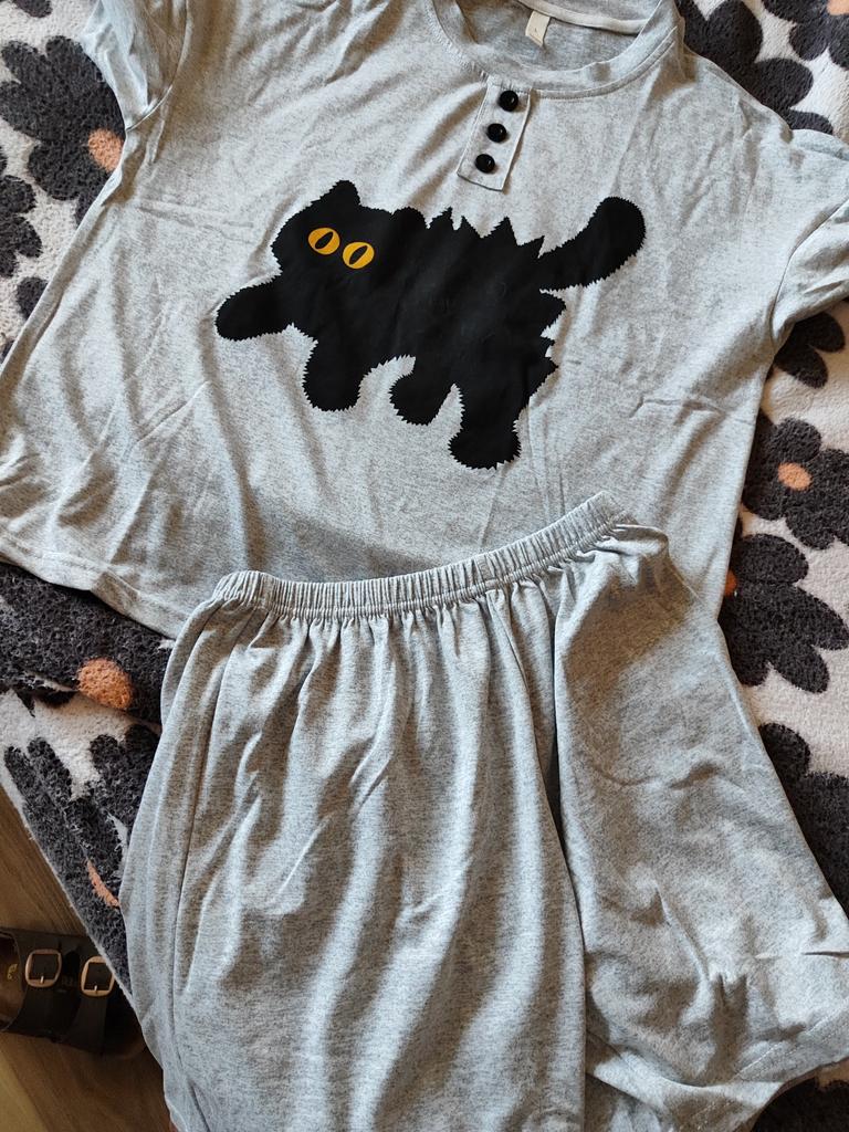 Summer Cute Cartoon Cat Print Women's Pajamas Set O-Neck T Shirt & Shorts Sleepwear 2 Pieces Sets Pajama for Girl Youth Homewear