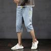 Summer Thin Five Quarter Denim Shorts Men's Seven Quarter Pants Loose Straight Leg Drawstring Elastic Waist Shorts
