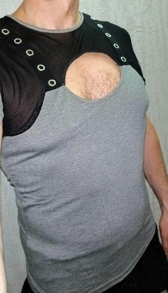 INCERUN Summer Men Short Sleeve Mesh Sheer Patchwork Hollow Out Skinny T-shirts
