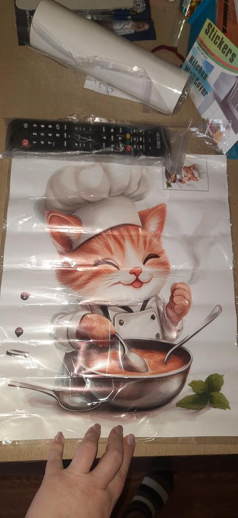 Handsome cat. Good sticker in front of the hob if there is a glass screen