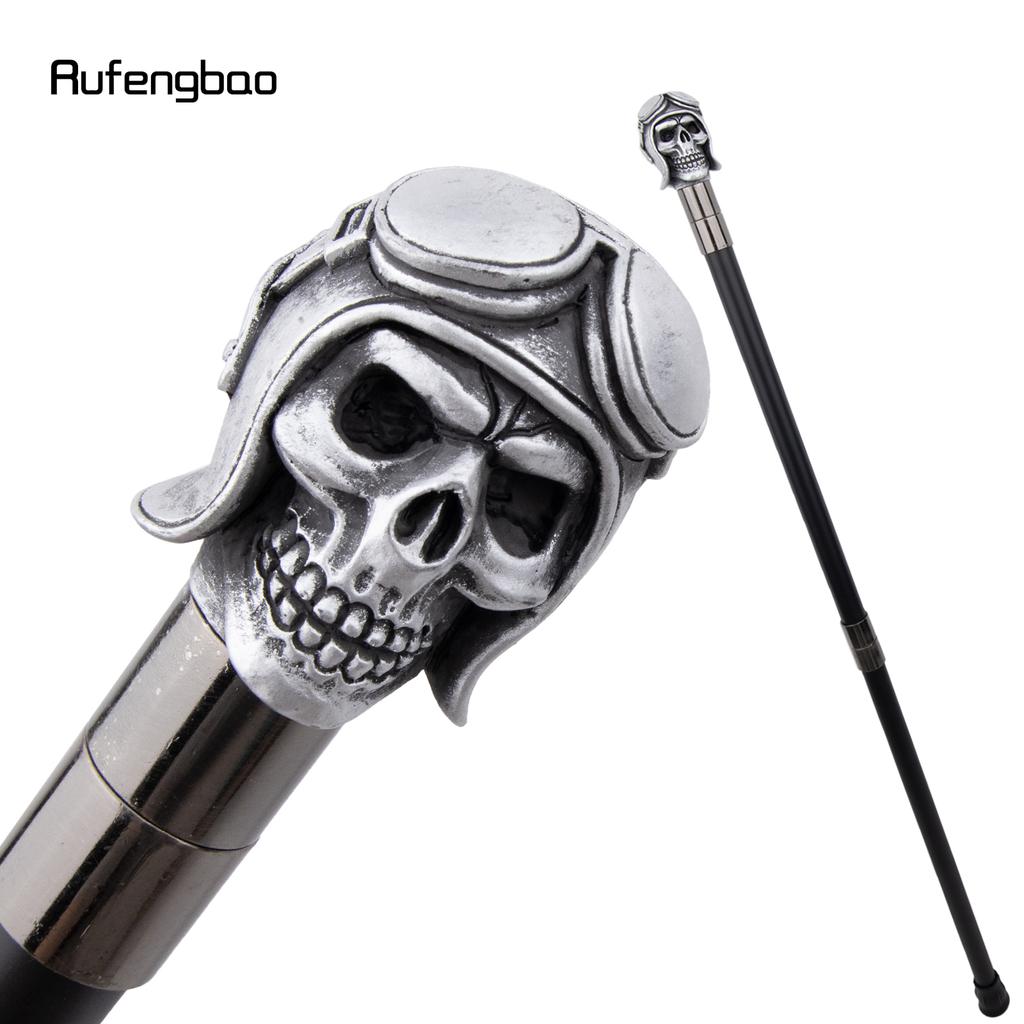 Silver Resin Skull Head Walking Cane Fashion Decorative Steel Walking Stick Gentleman Elegant Cosplay Cane Knob Crosier 92cm