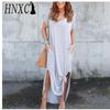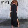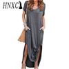 HNXC Sexy Women Dress Plus Size 5XL Summer Solid Casual Short Sleeve Maxi Dress for Women Long Dress Female Dresses