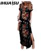 IHUASU Women's Fashion Summer Spring Short Sleeve V-Neck Casual Dresses
