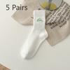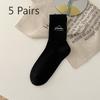 5 Pairs of Female Spring Summer Letter Embroidered Tube Socks