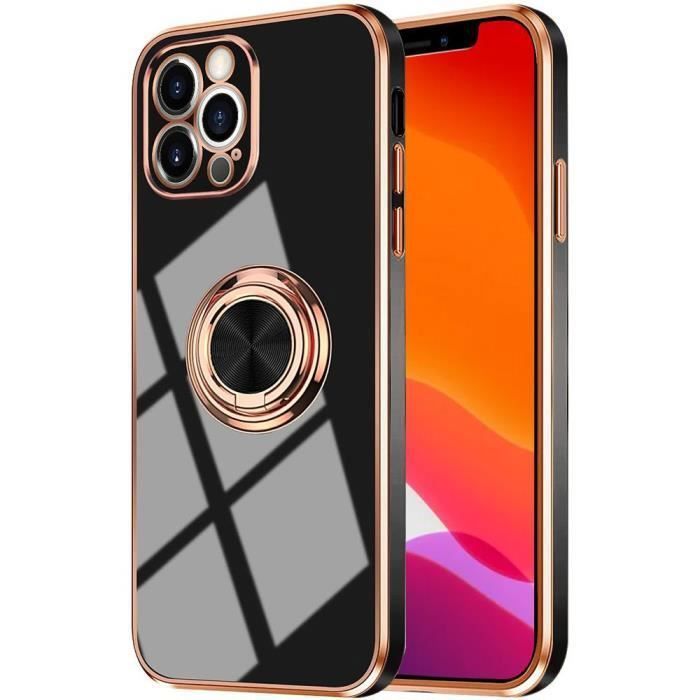 Protective Case - E.F.CONNECTION - for iPhone 12 Pro - Scratch-Resistant TPU - Black with Gold Edge - Practical Ring