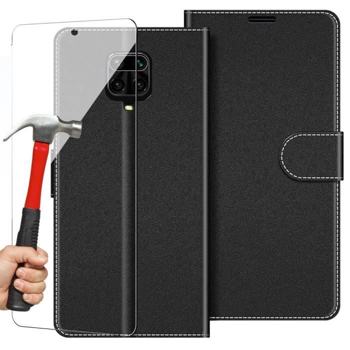 Coque pour Redmi Note 9Pro - Effet Cuir Noir - Protection Renforcée - Fermeture Magnétique - Inclus Verre Trempé