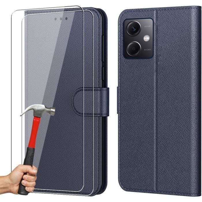 Coque - E.F.CONNECTION - pour Redmi Note 12 5G - Effet Cuir Bleu Marine - Portefeuille - Verres Trempés