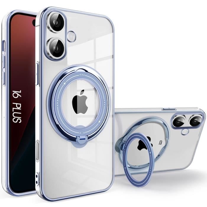Transparent Silicone Case for iPhone 16 Plus with Integrated Magnetic Stand - Blue Shockproof Protection