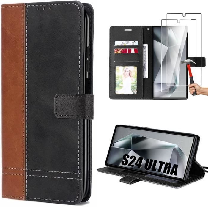 Case - E.F.CONNECTION - for Samsung Galaxy S24 Ultra - Shockproof - 2 Tempered Glasses - Flip