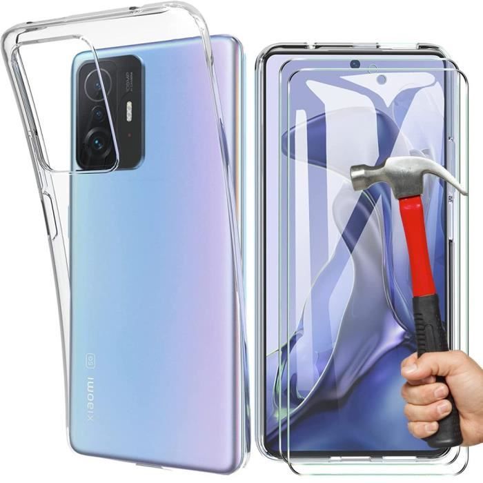Case for Xiaomi Mi 11T + 2 Tempered Glasses, Soft Shockproof Transparent Silicone Case