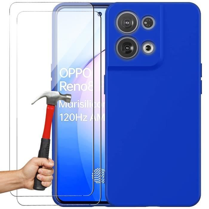 Protective Case - E.F.CONNECTION - for OPPOReno 8 Pro 5G - Soft Silicone - 2 Tempered Glass - Blue