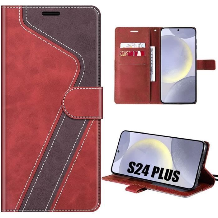 Coque - Efconnection - pour Samsung Galaxy S24 Plus - Rouge - Effet Cuir Bicolore - Souple