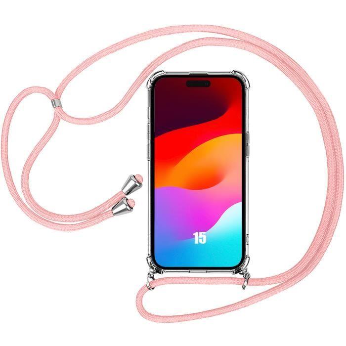 Case - E.F.CONNECTION - for iPhone 15 - Shockproof - Ultra-transparent - Pink Lanyard