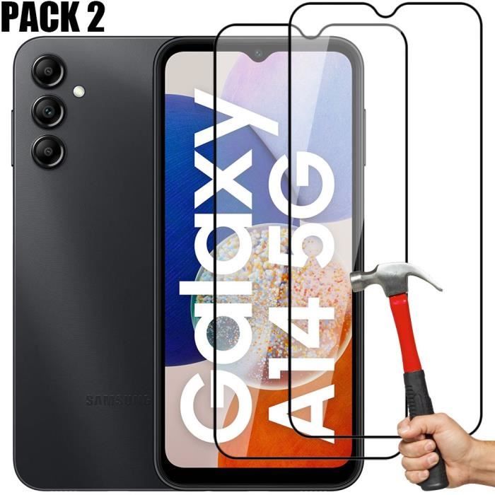 Full Tempered Glass for Samsung Galaxy A14 4G/5G - E.F.CONNECTION - Pack of 2 Black Glasses - Anti-fingerprint