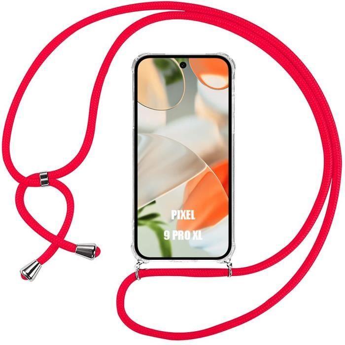 Silicone Case for Google Pixel 9 Pro XL - Shockproof Scratch-Resistant Transparent with Red Cord