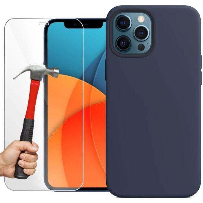 Coque Silicone - E.F.Connection - pour iPhone 13 Pro Max - Ultra Slim - Bleu Marine - 2 Verres Trempés