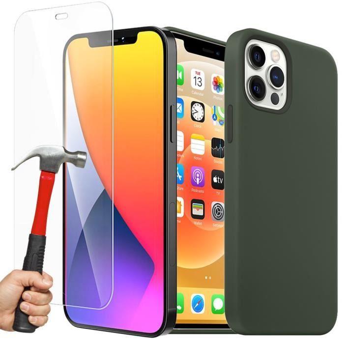 Matte Silicone Case For iPhone 13 Pro (6.1") Night Green and 2 Tempered Glass Screen Protector E.F.Connection