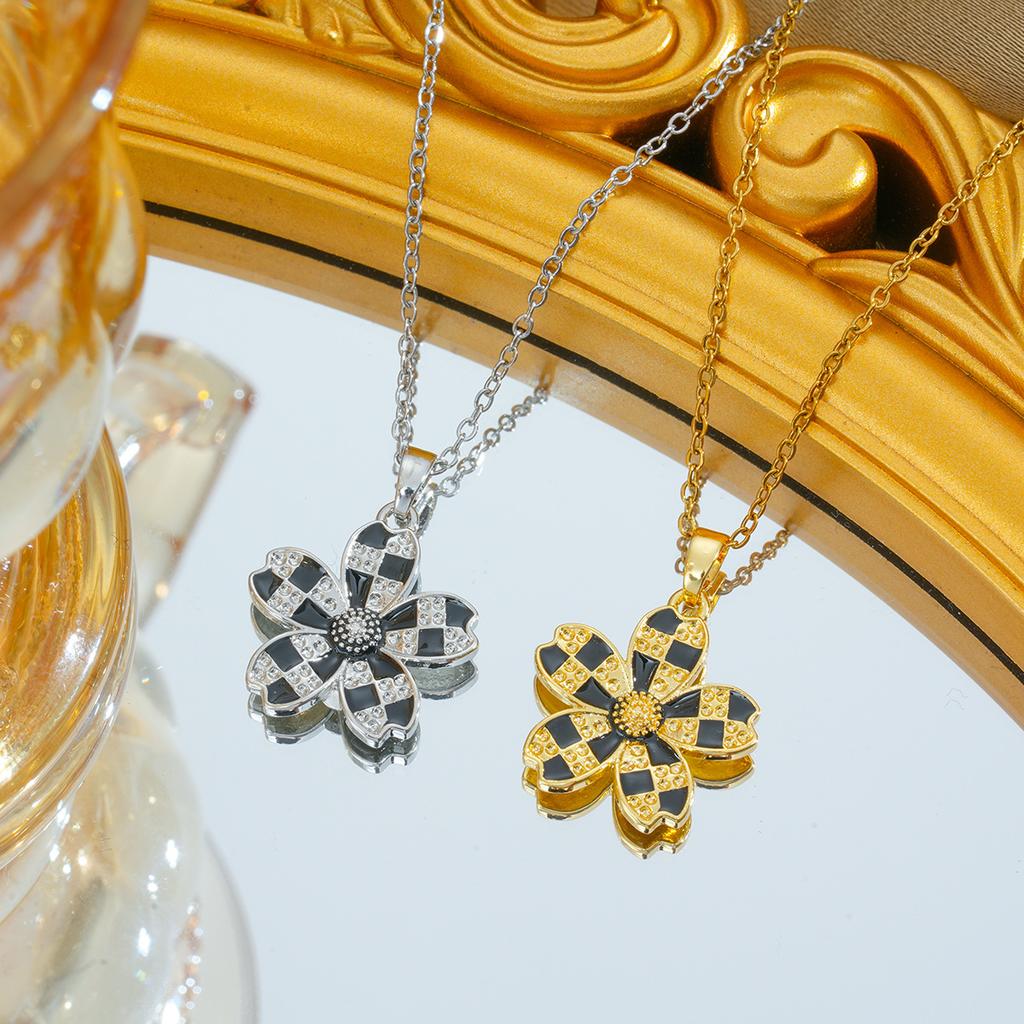 Black and White Chess Board Five-leaf Flower Necklace Dripping Oil Women's Flower Pendant Simple Temperament