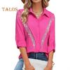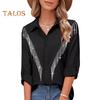 Stylish Lapel Design: Elevate your wardrobe with the lapel feature of this shirt, complemented by rhinestone tassels for a touch of elegance. The single-row button cardigan design adds sophistication to your ensemble.