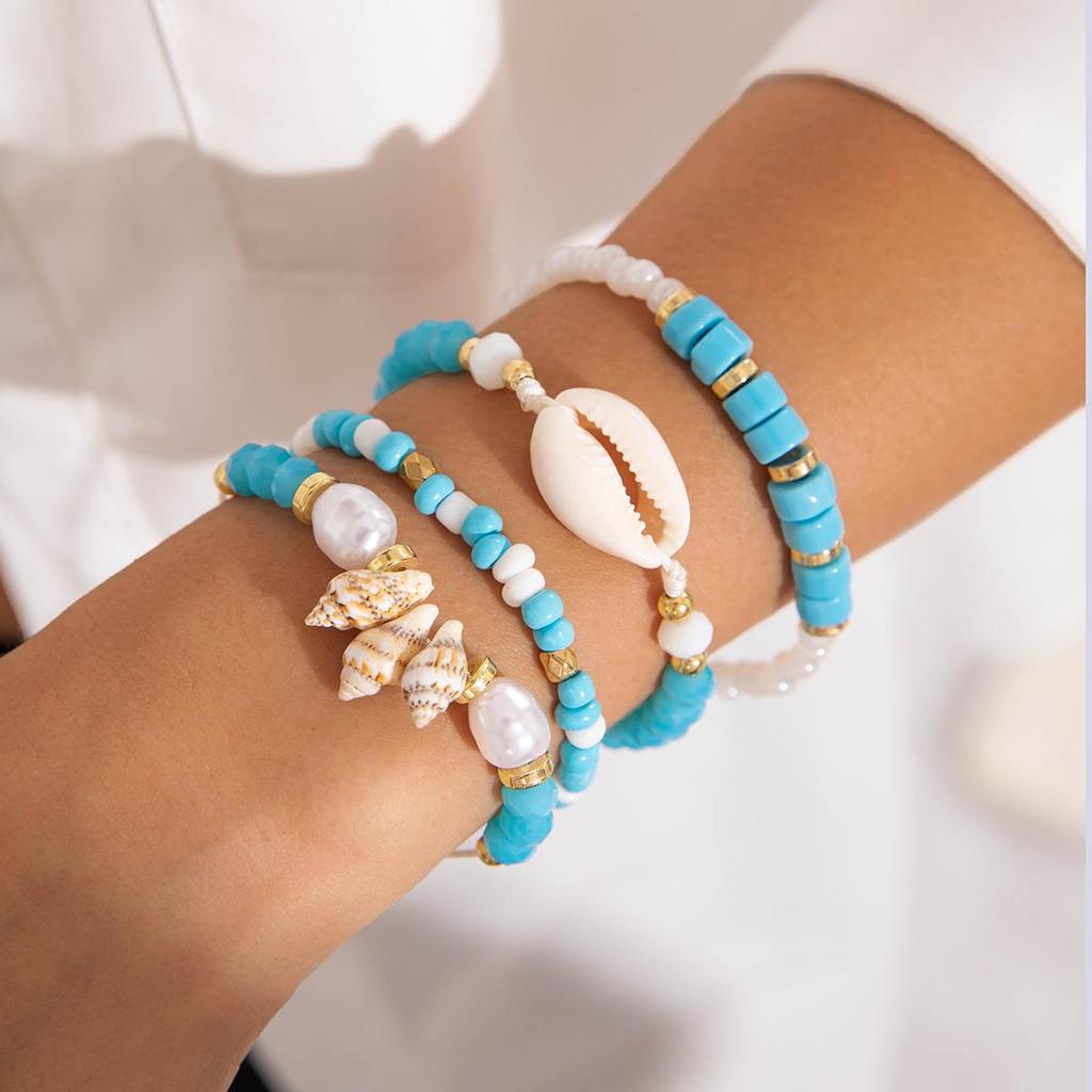 Summer New Sky Blue Soft Pottery Piece Shell Conch Rice Bead Bracelet for Women's Jewelry, Summer Cool Feeling Small Fresh Bracelet