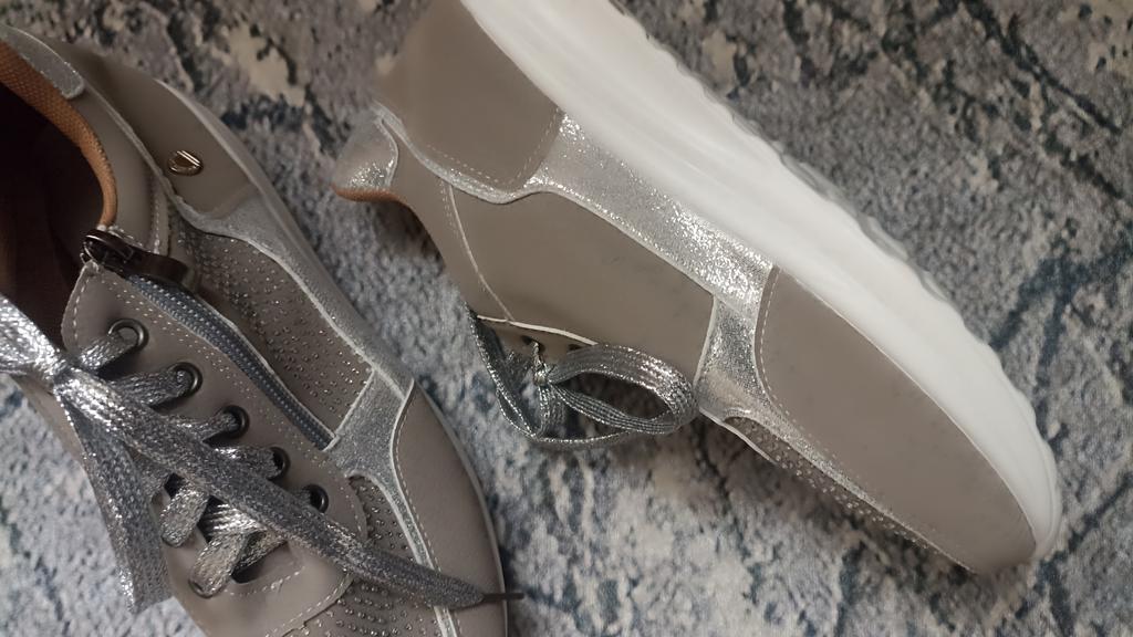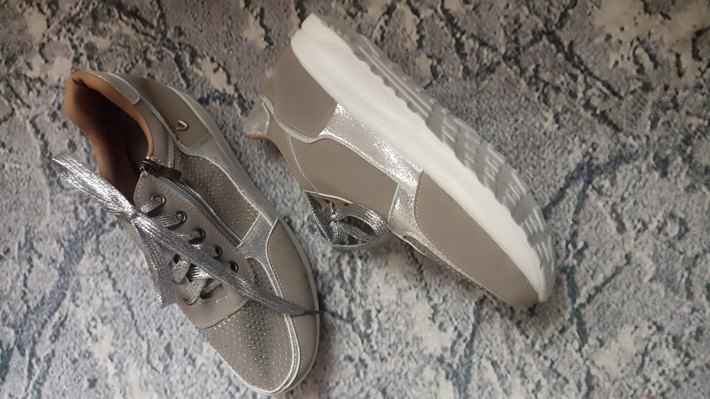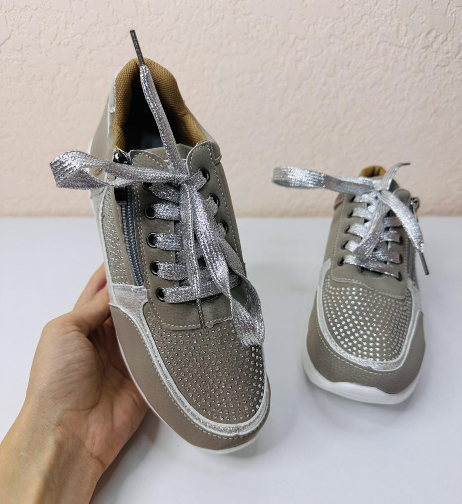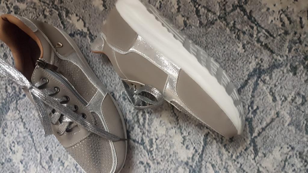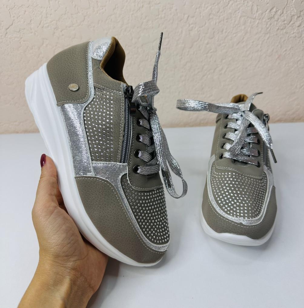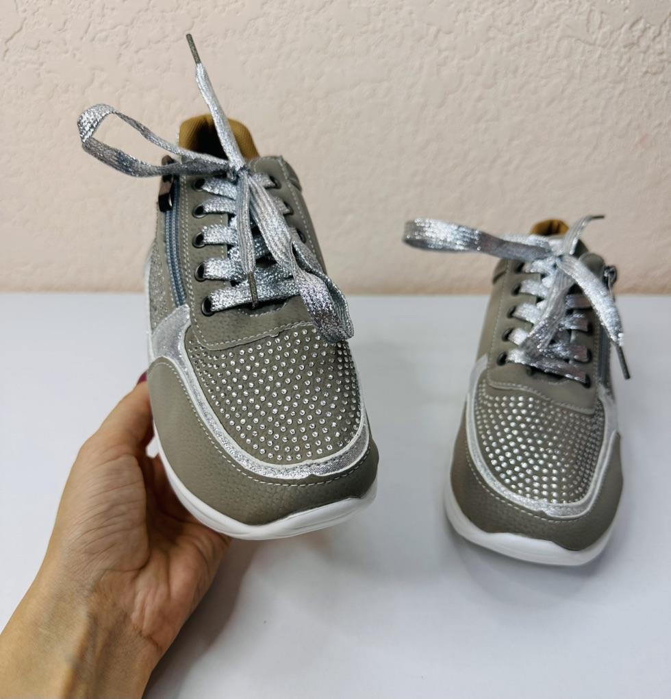 women's sports shoes ♦️These shoes are special, fashionable, and beautiful with sparkling laces and rhinestones, and they have a comfortable sole. ♦️I chose size 39 and in gray color and I received them exactly in the size and color I wanted. The shoes are very comfortable for everyday walking Sizes 35-43 can be ordered ♦️ The product came to me in protected delivery. Was the review helpful to you? Like and follow me for more reviews.
