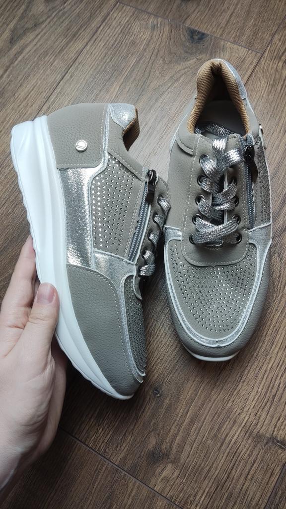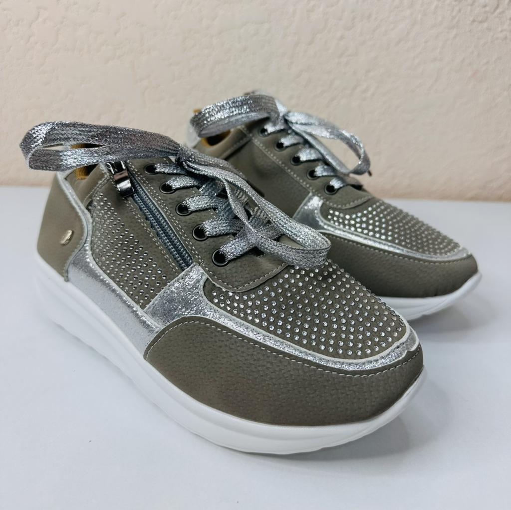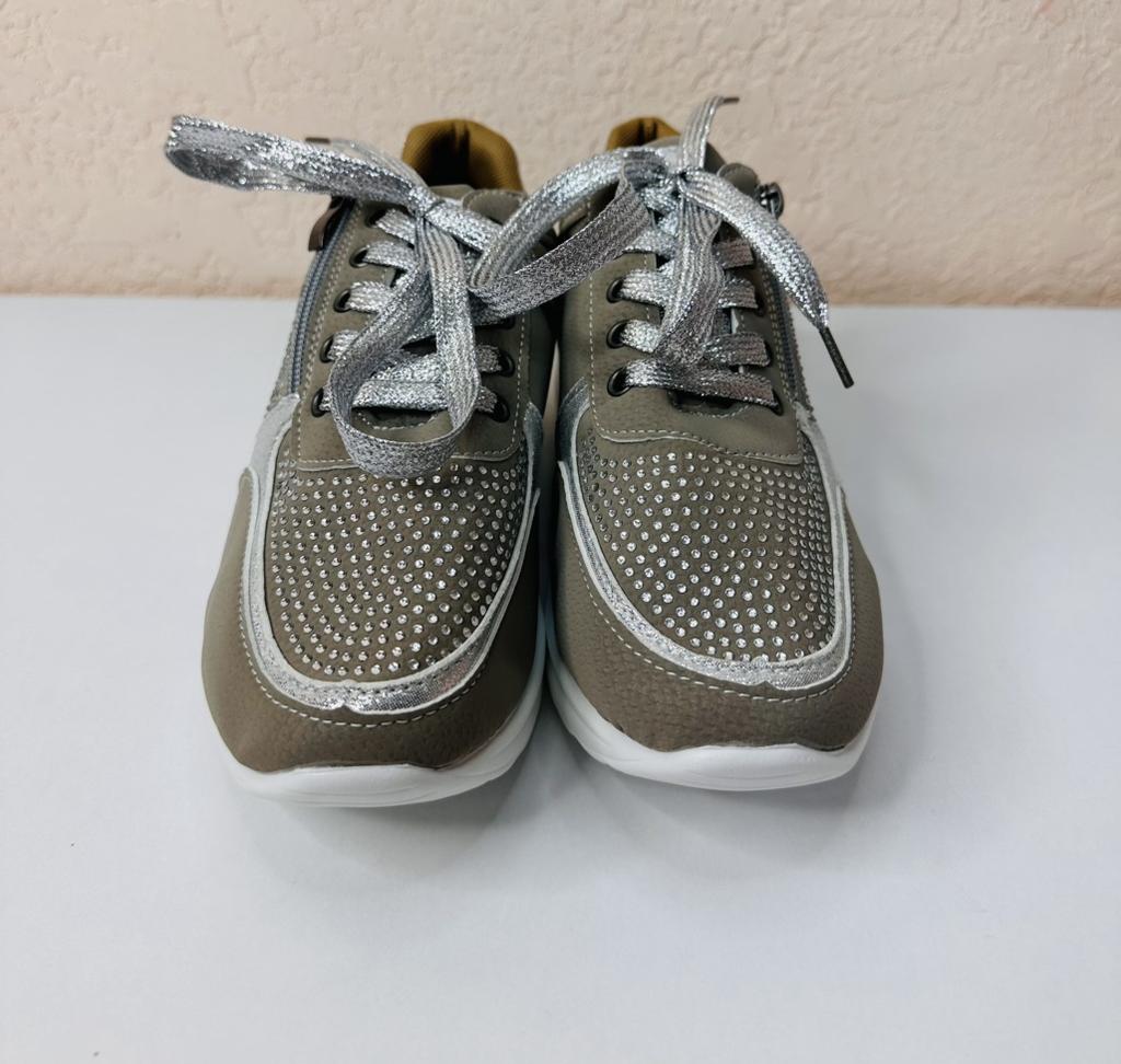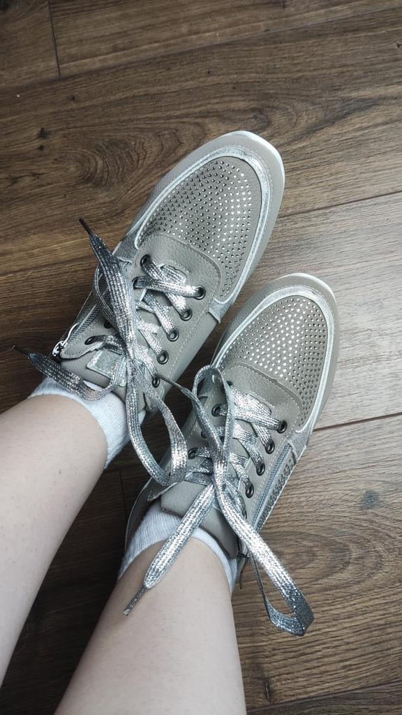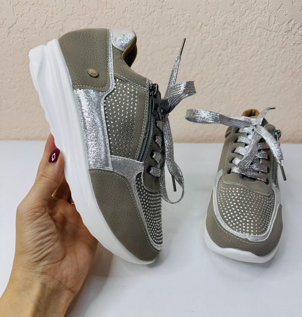 women's sports shoes ♦️These shoes are special, fashionable, and beautiful with sparkling laces and rhinestones, and they have a comfortable sole. ♦️I chose size 39 and in gray color and I received them exactly in the size and color I wanted. The shoes are very comfortable for everyday walking Sizes 35-43 can be ordered ♦️ The product came to me in protected delivery. Was the review helpful to you? Like and follow me for more reviews.