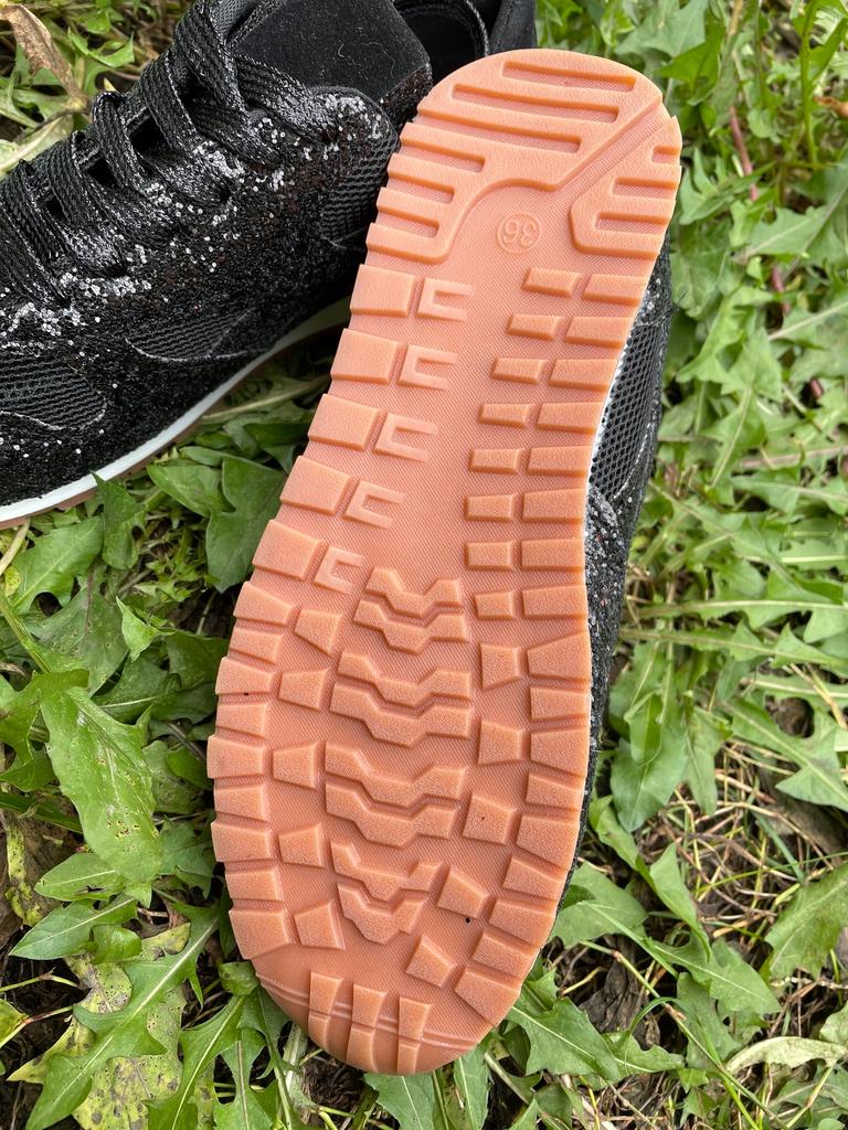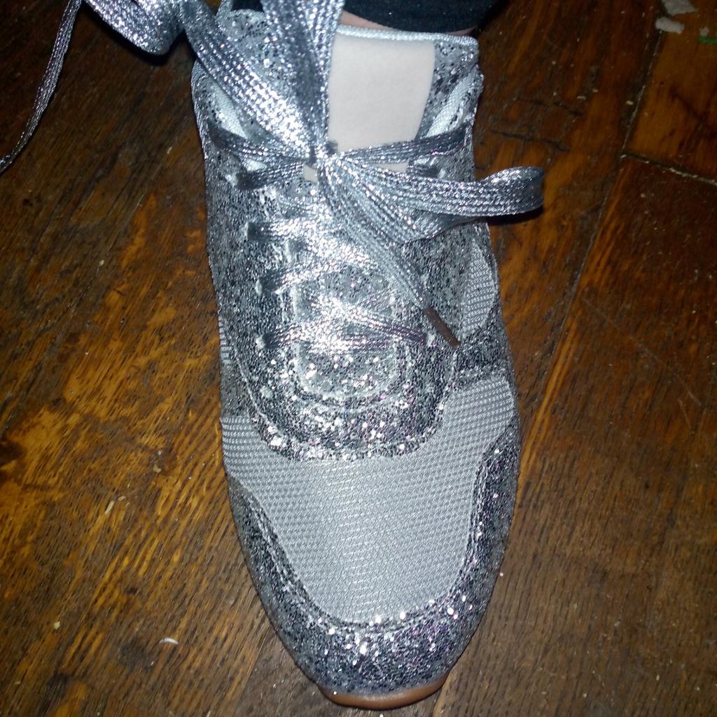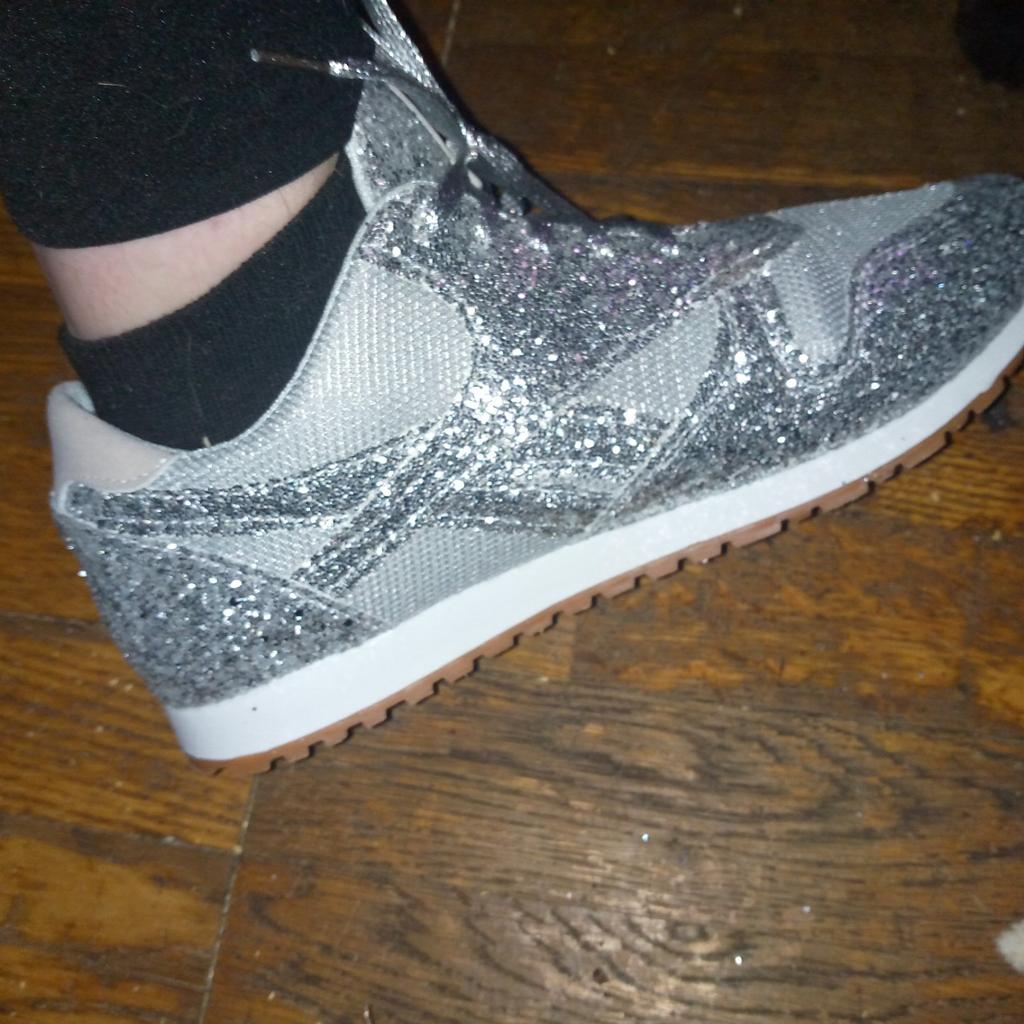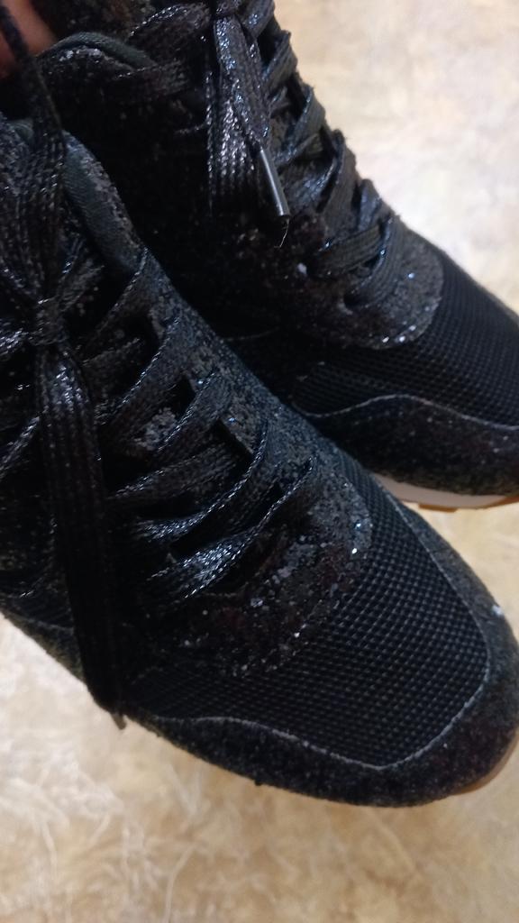 Sneakers with glitter. Overall not bad, for the money, the glitter doesn't shed, it holds on firmly, but the sneakers rustle a bit when they rub against each other. To size : On daughter 38 Size. Her foot is 23 cm Details: Insole 23.5 cm Platform 4/1 cm