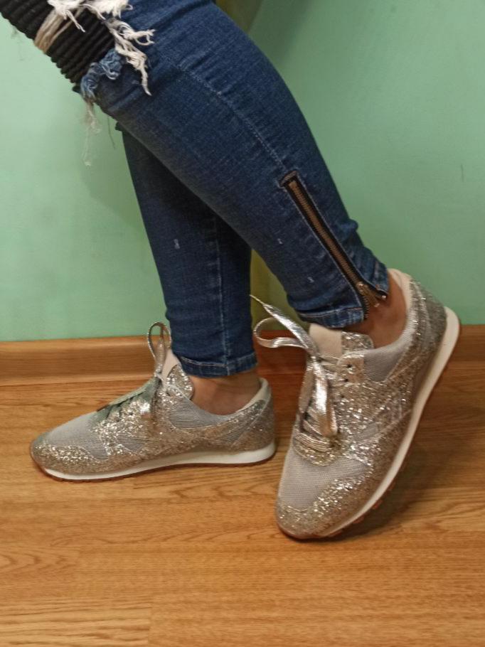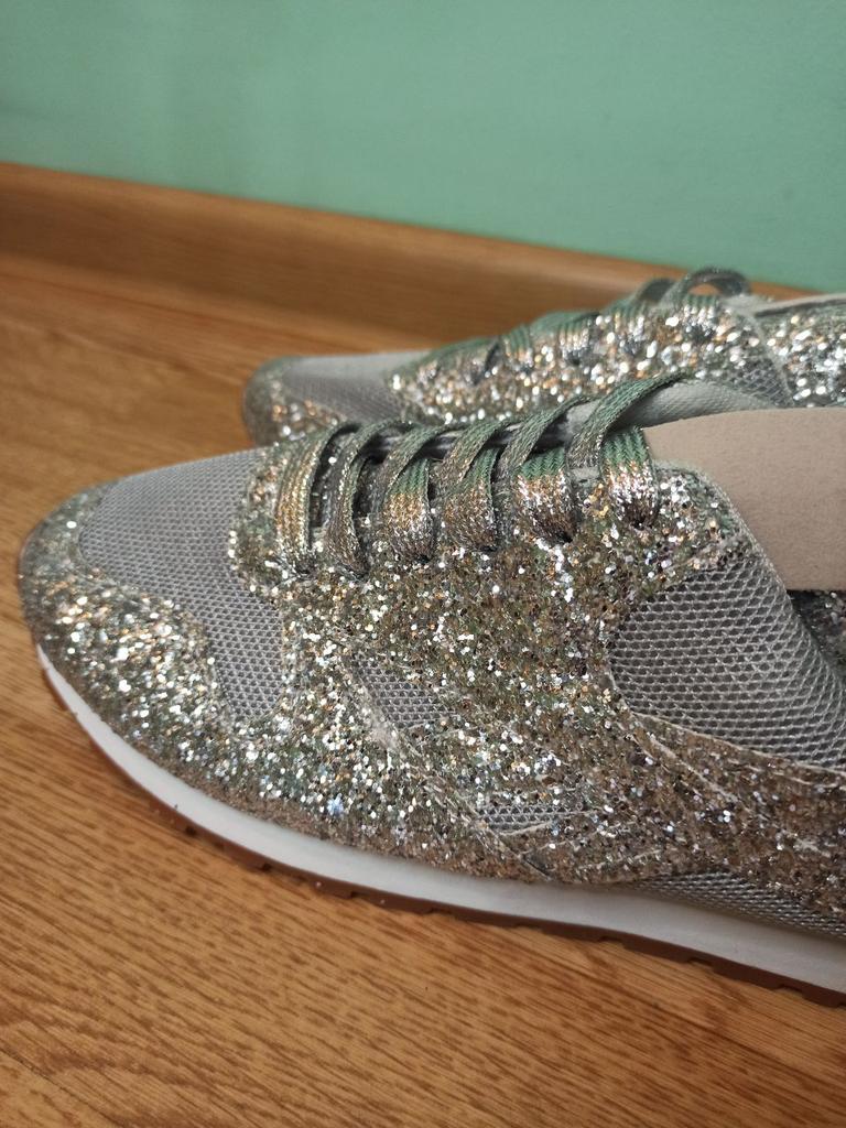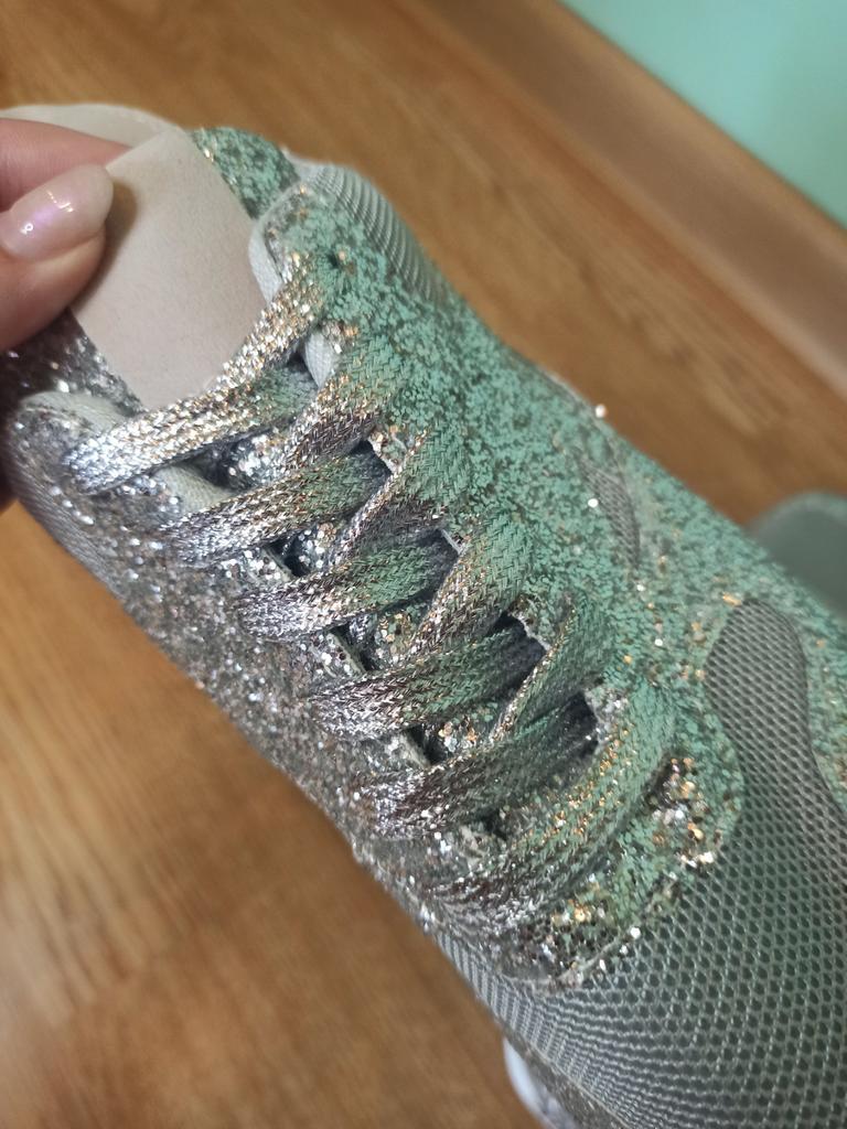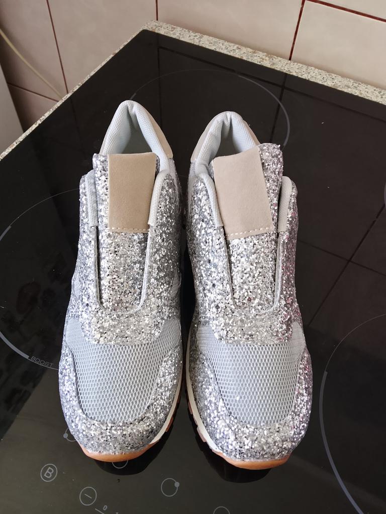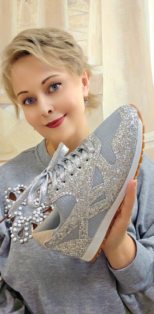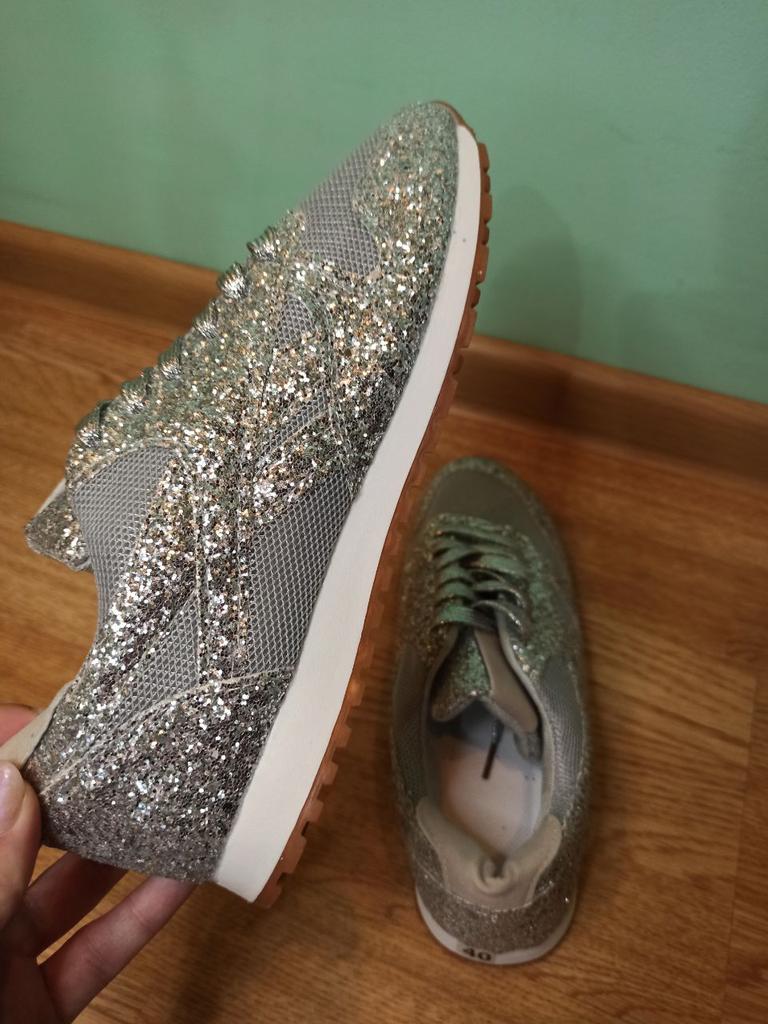 Glitter sneakers. Fabulous design, good tailoring and material - this is what you were looking for. Excellent for an evening outfit or simply to brighten up your everyday life. A large selection of different colors. Size range: from 35 to 43. I chose size 40. Perfect for a 25 cm foot. Definitely recommend.👍👍👍