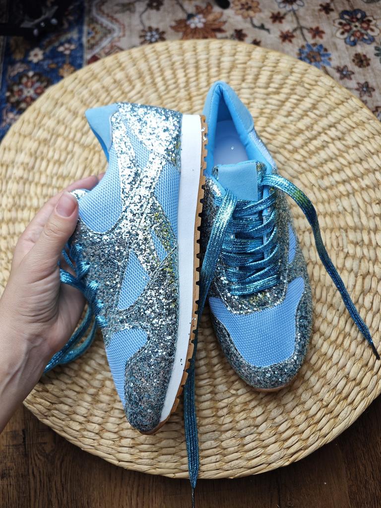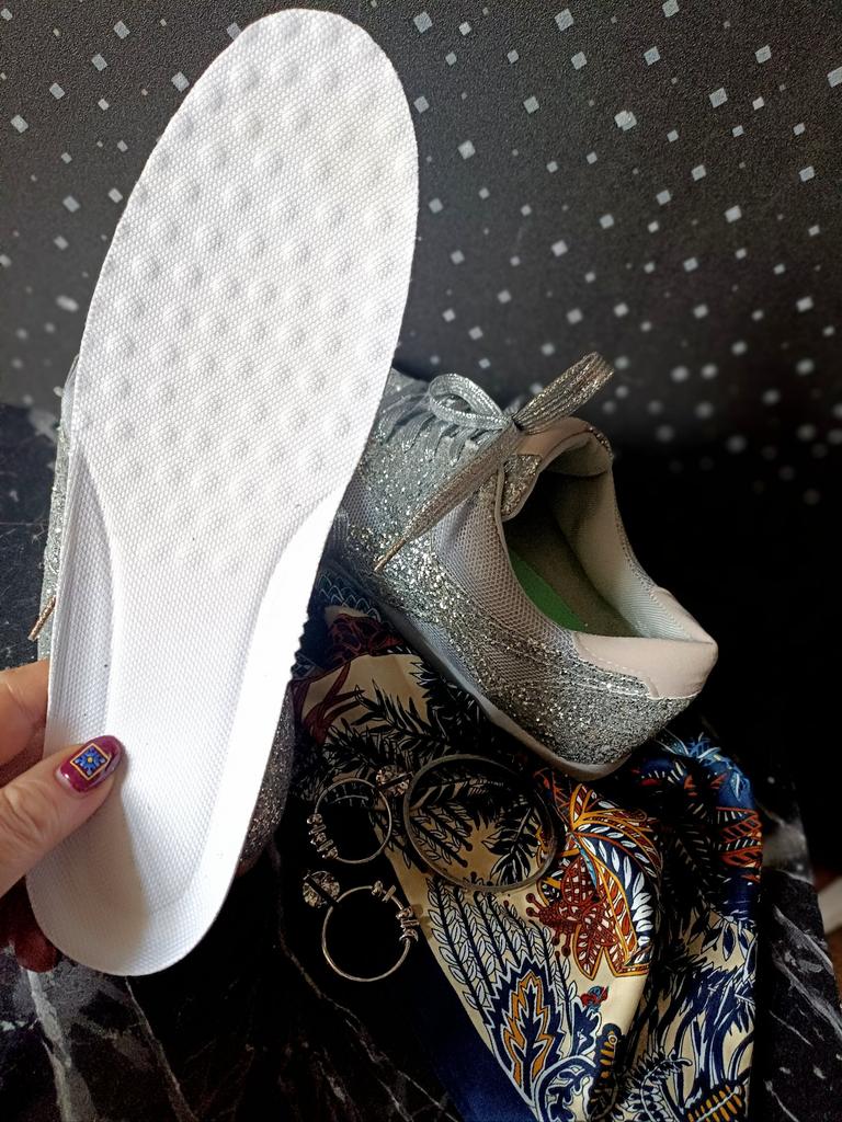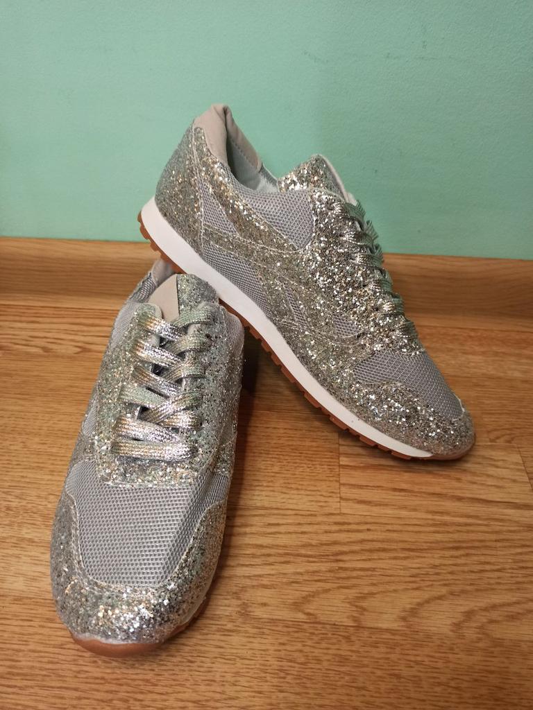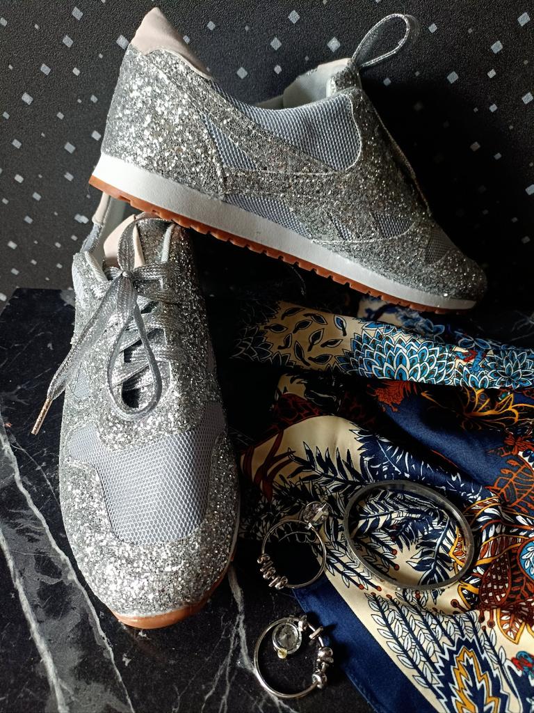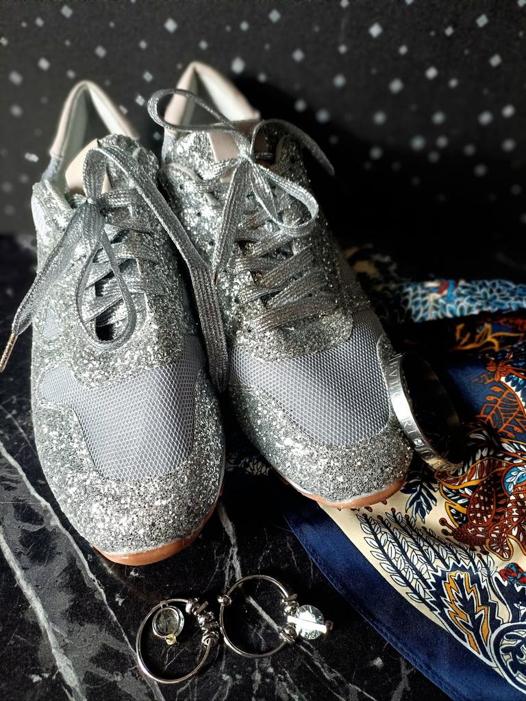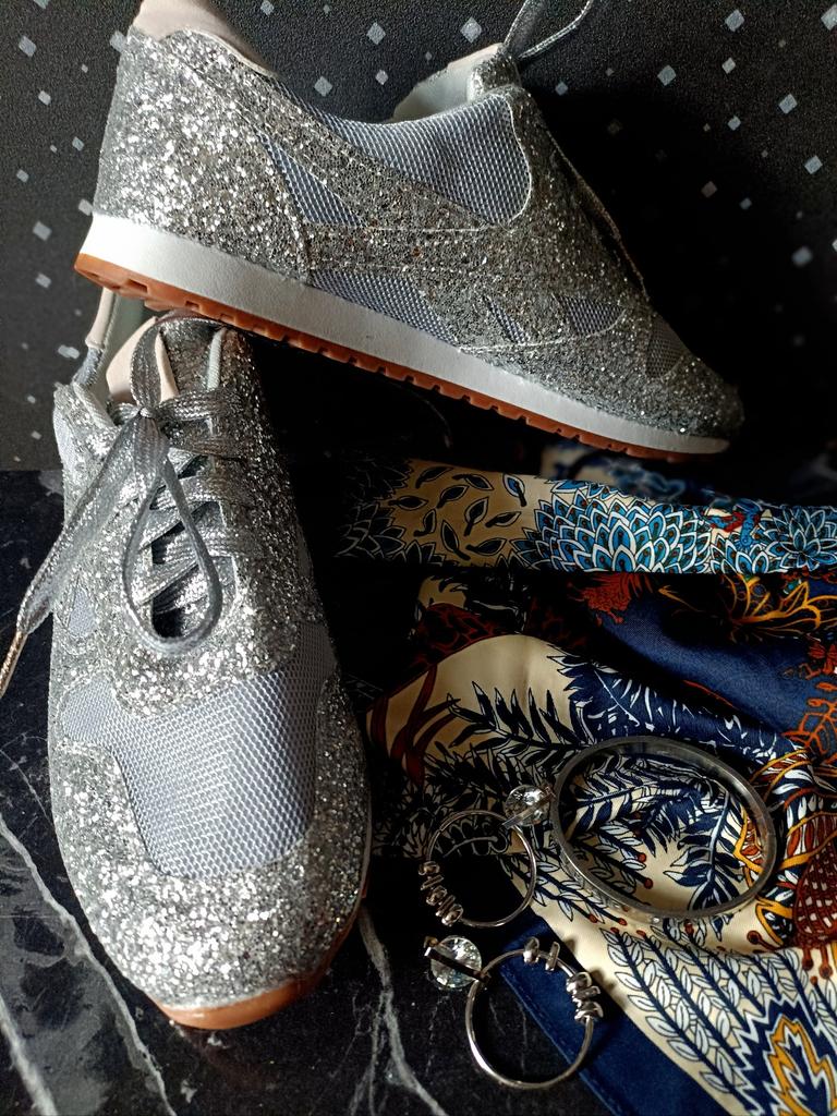 Glitter sneakers. Fabulous design, good tailoring and material - this is what you were looking for. Excellent for an evening outfit or simply to brighten up your everyday life. A large selection of different colors. Size range: from 35 to 43. I chose size 40. Perfect for a 25 cm foot. Definitely recommend.👍👍👍