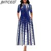 BITCED Casual Women Mid Waist Round Neck Pullover Dress Big Hem Print Dress Short Sleeve Ankle Length Dress Women Dresses